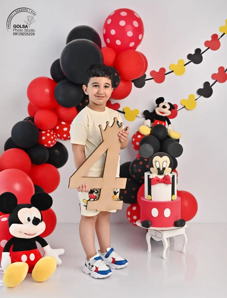 در کنار استفاده از بادکنکهای رنگی، جذابیت عکسهای شما میتواند تا حد بسیار زیادی به استفاده از بادکنکهای طرحدار و فانتزی گره خورده باشد! شما در پروسه عکاسی میتواند از بادکنکهایی با طرح عدد یا بادکنکهایی با طرح کارتون مورد علاقه کودک خود استفاده کنید.