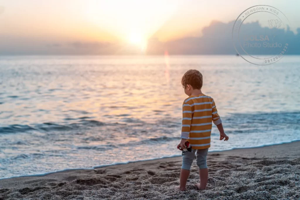 بهترین ساعت عکاسی کودک کنار دریا چه زمانی است؟